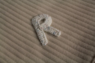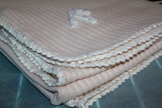 | Picô e letra personalizada em crochet deram outro ar a uma simples manta! |
