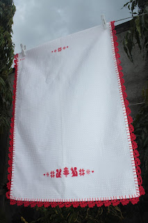 E como tinha um pano da loiça já com o picô em crochet vermelho, foi só procurar o gráfico "perfeito".