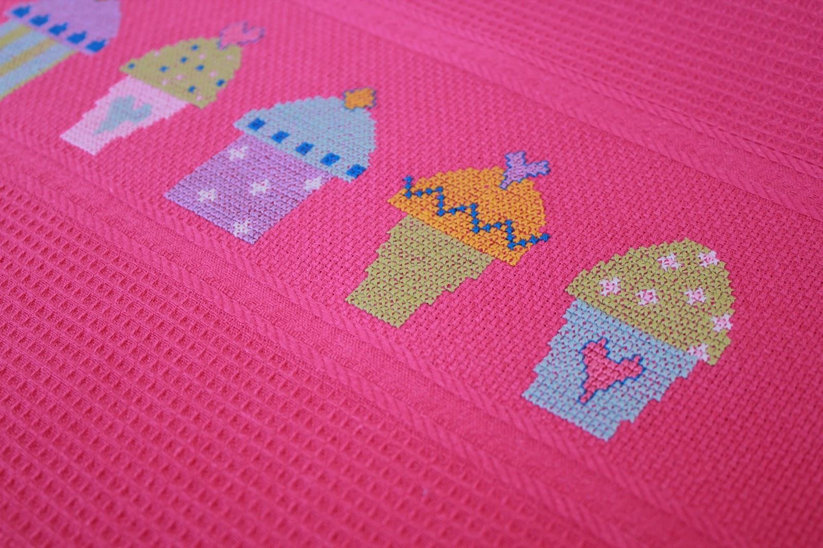 Não foi fácil encontrar um gráfico que "caísse que nem uma luva" neste pano da loiça rosa choque, mas com a ajuda da amiga SB, tudo se tornou muito mais simples.