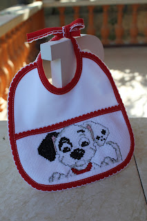 Mais um babete que irá seguir para Portugal juntamente com o Babete do Dálmata para esperarem o nascimento dos lindos bebés que os irão usar.