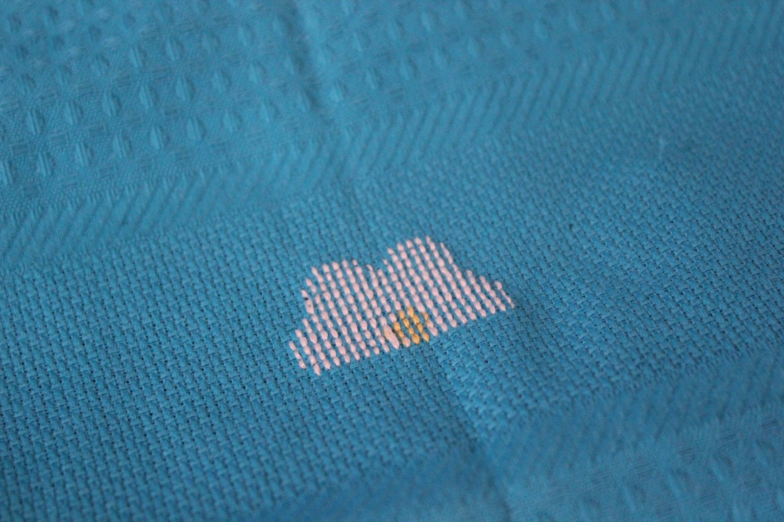 Não foi fácil encontrar um gráfico que "caísse que nem uma luva" neste pano da loiça rosa choque, mas com a ajuda da amiga SB, tudo se tornou muito mais simples.